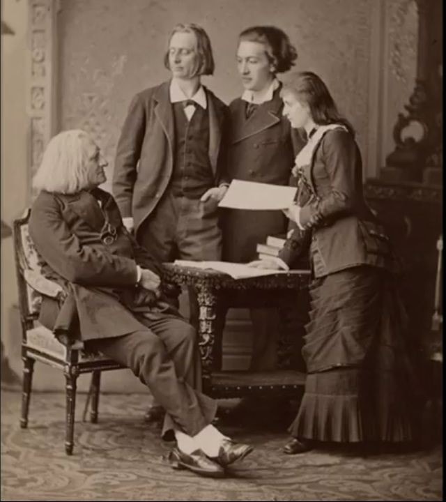 Une autre photo de Liszt avec ses élèves, mais cette fois par un autre photographe. Celle-ci a été prise en 1881 par Julien Ganz à Bruxelles, en Belgique. Sur la photo, de gauche à droite, sont représentés Liszt, Juliusz Zarebski, Franz Servais et Johanna Wenzel (qui est devenue Johanna Wenzel-Zarebski, je suppose que ça aide de faire partie de la communauté Liszt 😉 ). Franz Servais était violoncelliste et compositeur, Juliusz Zarebski et Johanna Wenzel étaient pianistes.