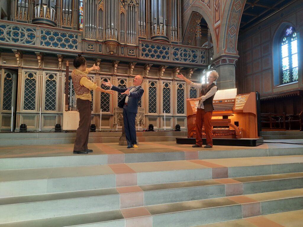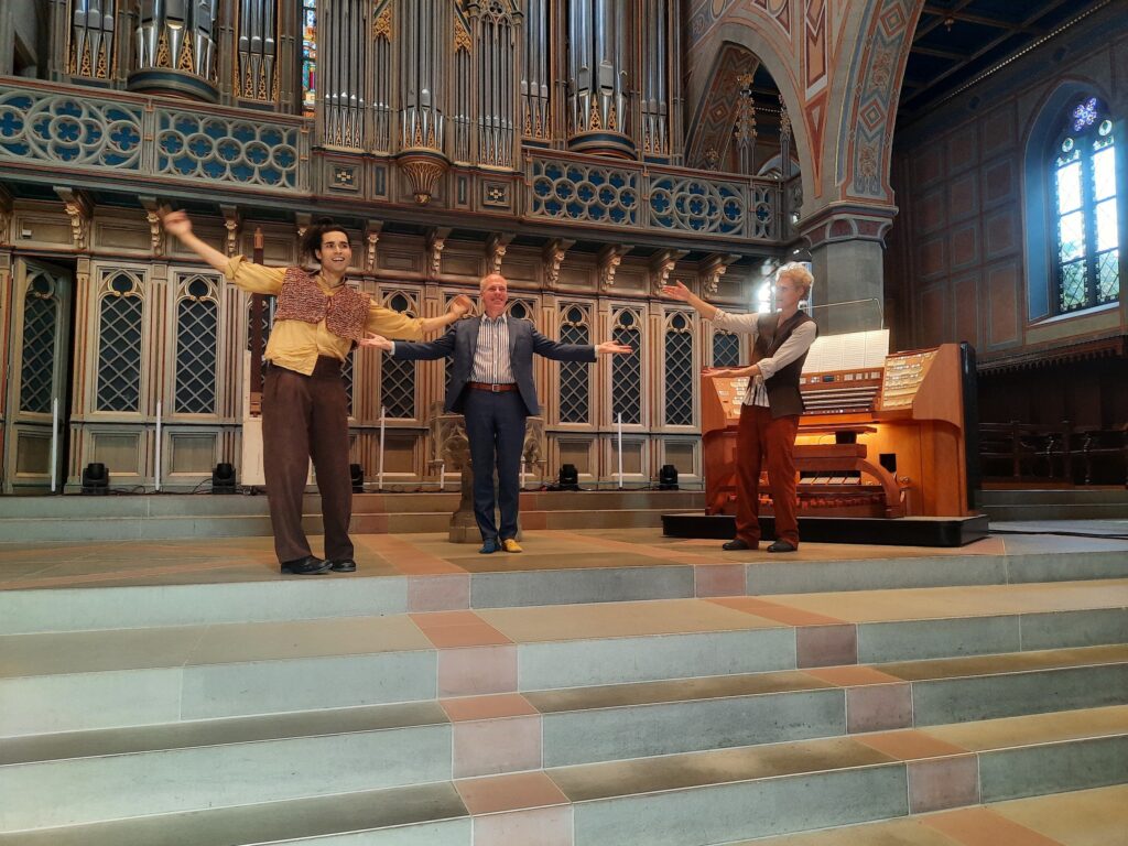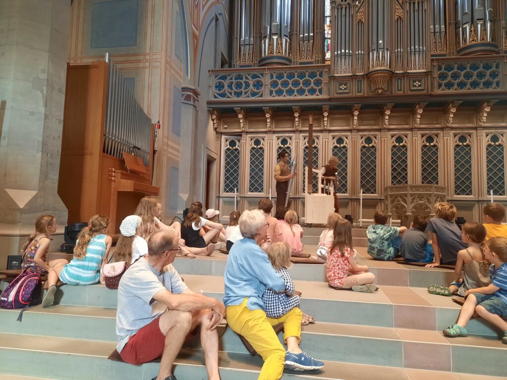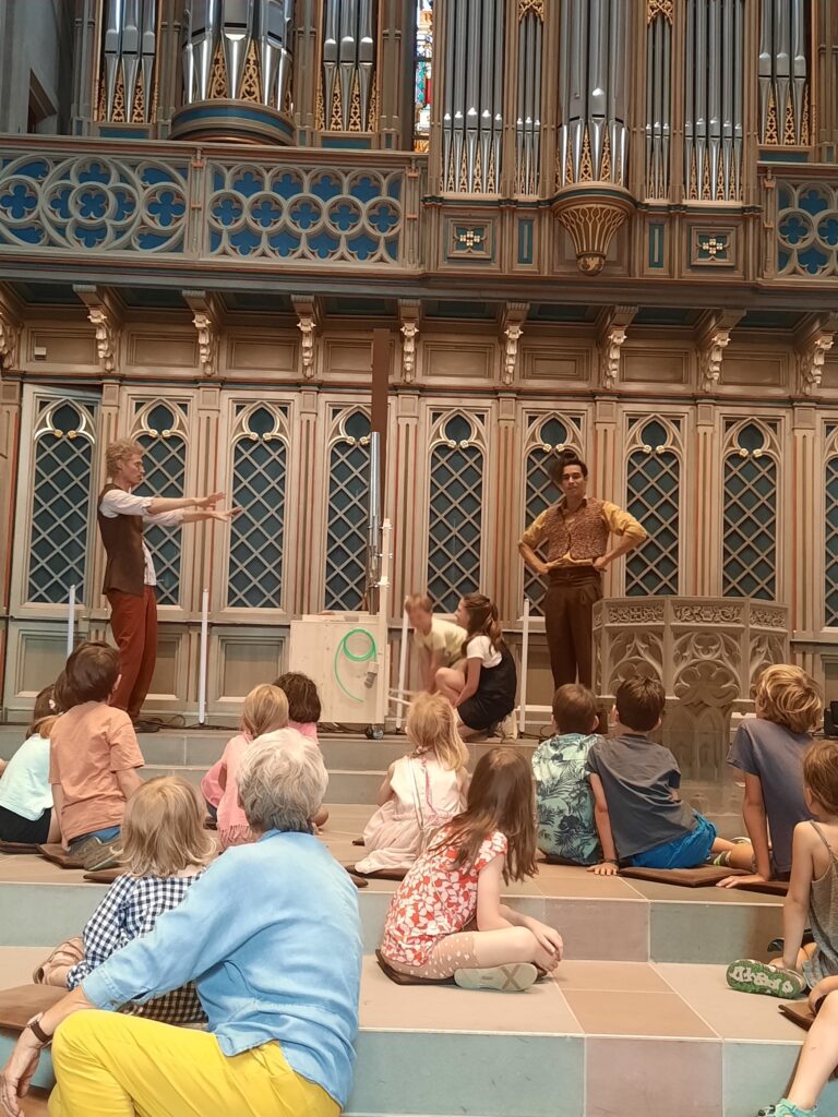 In St. Laurenzen, in the afternoon, the children show that was rehearsed earlier in the week, mixing theatre, dance, and music for children 6- to 13-year-old, was performed by the actor Christian Hettkamp, the actor-dancer Steven Forster, and Bernhard at the organ for the music. The concert was introduced by Manuela Brunner.