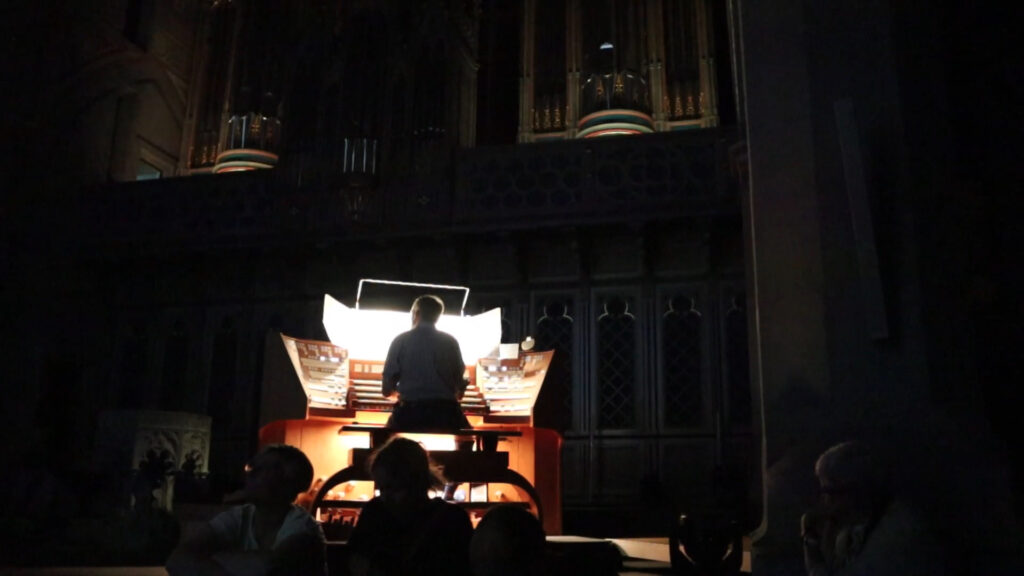 Initially, I had two hats during the festival: Bernhard invited me to take part in the new organ inauguration as an international musicologist, and as a contributor to the book that would be written about the festival and the organ afterwards. But I also interviewed some of the performers and filmed almost all the concerts and events so that the festival team can publish the content later. I ended up being busy every day, either video editing, or captions translating (with the help of Bernhard), or writing. Oh, and I forgot to mention that I was also teaching as a teacher assistant, since the course instructor at York accepted my request to teach the two first weeks of tutorial on Zoom.