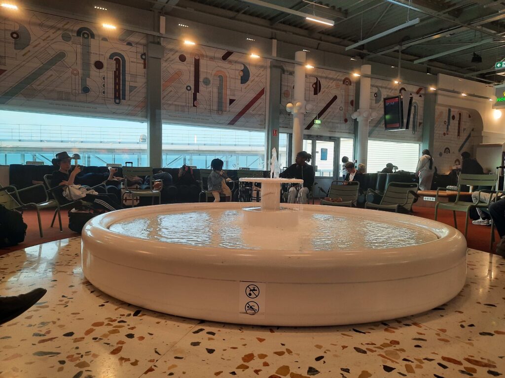 I stayed only one day in Paris. I am now back in Paris Charles de Gaulles airport to fly to Germany. My next stop is Berlin where I will rent a car and drive to Weimar to spend a few days in the Liszt archives. More news to come soon. For now, I enjoy the fountain in the new 2G terminal in CDG that feels like a Province airport.